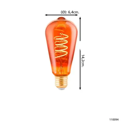 Eglo LED Edison E27 Filament Amber 4W 30lm - 820 Zeer Warm Wit | Dimbaar - Vervangt 15W