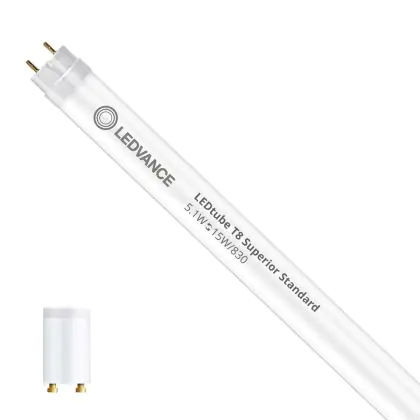 Ledvance LED Buis T8 Superior (EM/Mains) Standard Output 5.1W 810lm - 830 Warm Wit | 44cm - Vervangt 15W