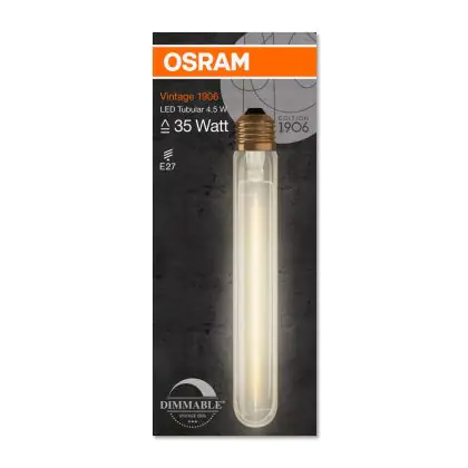 Osram Vintage 1906 LED E27 Tubular Filament Goud 4.5W 400lm - 824 Zeer Warm Wit | Dimbaar - Vervangt 40W