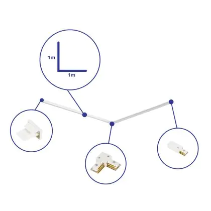 Rail Set 1-Fase L 1 x 1 Meter Wit | incl. Eindkap, Voedingsconnector en L -Verbindingsstuk